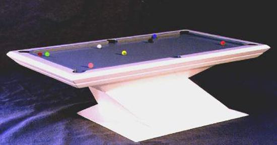 Abb.: Holzart MDF-weiß lackiert Tuchfarbe: grau Billard in höchster Vollendung. Eleganz und Design mit der Präzision des Billardspiels. Dieser außergewöhnliche Tisch ist speziell für den eleganten Wohnbereich entworfen worden. Eine Eingliederung als Wohn-, Eß- oder Schreibtisch mit einer entsprechenden Abdeckplatte aus dem Zubehörprogramm ist Aufgrund der großen Beinfreiheit von ca. 60 cm möglich. Die Tischhöhe ist verstellbar und beträgt 79 cm - 81 cm. Der Sockelkörper besteht aus drei einzelnen Teilen und steht mit seiner gesamten Grundfläche plan auf dem Boden. Bitte geben Sie Ihren Bodenaufbau und Belag bei der Bestellung an. ( Holz oder Beton, Teppich, Parkett, PVC ...)Spielfläche und Bandenrahmen liegen auf einem verstellbaren Trägerrahmen um event. Unebenheiten des Bodens auszugleichen. Die Ballfangtaschen bei den Poolmodellen sind nach innen versetzt, zum Teil unter die Spielfläche eingebaut. Für den Transport läßt sich der Tisch komplett zerlegen. Größtes Teil ist der einteilige Bandenrahmen. Dieser ist standardmäßig in einem Stück verleimt. Ein zerlegbarer Bandenrahmen ist auf Wunsch möglich. Sie können Wählen: Holzart: Buche, Eiche, Esche, Erle, Mahagoni, Nußbaum, Kirsche, Ahorn, Wenge, Teak. Oder Lackierung in ca. 170 RAL- Farben. Lackierungen alle seidenmatt. Sonderausführungen auf Wunsch möglich. Tuch-Bespannung: Grundausstattung Grün oder Blau, Rot, Grau, Schwarz. Technische Änderungen vorbehalten, Zubehör ist nicht im Preis enthalten. Preis inkl. gesetzlicher Mehrwertsteuer: ab 6.000.- € Carambolage 1 Außenmaß: ca. 140 x 245 cm Spielfeld: 105 x 210 cm. Mindestraumbedarf: 305 x 410 cm. Spielfeld aus spezialbeschichter Verbundplatte (30mm 1-teilig) Gewicht ca. 360 kg Bestell- Nr.: 098 01 01 Carambolage 2 Außenmaß: ca. 140 x 245 cm Spielfeld: 105 x 210 cm. Mindestraumbedarf: 305 x 410 cm. Spielfeld aus Naturschiefer (19mm 1-teilig) Gewicht ca. 420 kg Bestell- Nr.: 098 01 02 Pool 1 Außenmaß: ca. 134 x 233 cm Spielfeld: 99 x 198 cm. 7 Ft. Mindestraumbedarf: 299 x 398 cm. Spielfeld aus spezialbeschichter Verbundplatte (30mm 1-teilig) Gewicht ca. 350 kg Bestell- Nr.: 098 01 03 Pool 2 Außenmaß: ca. 134 x 233 cm Spielfeld: 99 x 198 cm. 7 Ft. Mindestraumbedarf: 299 x 398 cm. Spielfeld aus Naturschiefer (19mm 1-teilig) Gewicht ca. 410 kg Bestell- Nr.: 098 01 04 Pool 3 Außenmaß: ca. 147 x 259 cm Spielfeld: 112 x 224 cm. 8 Ft. Mindestraumbedarf: 312 x 424 cm. Spielfeld aus spezialbeschichter Verbundplatte (30mm 1-teilig) Gewicht ca. 380 kg Bestell- Nr.: 098 01 05 Pool 4 Außenmaß: ca. 147 x 259 cm Spielfeld: 112 x 224 cm. 8 Ft. Mindestraumbedarf: 312 x 424 cm. Spielfeld aus Naturschiefer (22mm 3-teilig) Gewicht ca. 470 kg Bestell- Nr.: 098 01 06 Pool 5 Außenmaß: ca. 162 x 289 cm Spielfeld: 127 x 254 cm. 9 Ft. Mindestraumbedarf: 327 x 454 cm. Spielfeld aus spezialbeschichter Verbundplatte (30mm 1-teilig) Gewicht ca. 405 kg Bestell- Nr.: 098 01 07 Pool 6 Außenmaß: ca. 162 x 289 cm Spielfeld: 127 x 254 cm. 9 Ft. Mindestraumbedarf: 327 x 454 cm. Spielfeld aus Naturschiefer (25mm 3-teilig) Gewicht ca. 550 kg Bestell- Nr.: 098 01 08 Abdeckplatte, 2-teilig zur Verwendung des Billardtisches als Wohn-, Eß- oder Schreibtisch. Passend zum Tisch. Bitte geben Sie bei Nachbestellung die Nummer und Farbe des Tisches an. Bestell- Nr.: 098 01 10 Anspielpunkte in den Rahmen eingelassen, nicht aufgedruckt. Bestell- Nr.: 098 01 11 Spielfertige Aufstellung auf Anfrage. Weitere Größen für Carambolage auf Wunsch möglich! |
