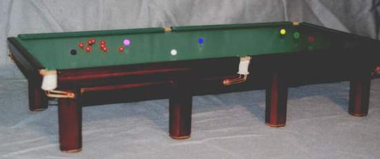 Abb.: Holzart Buche-dunkelbraun Tuchfarbe: oliv-grün Ein hochwertiger, professioneller Snookertisch. Eine breite Kastenkonstruktion und acht großzügige Füße geben dem Unterbau die benötigte hohe Stabilität und Standfestigkeit. Die Spielfläche liegt schwingungsfrei auf einem innenliegendem Trägerrahmen und der Bandenrahmen ist an den jeweiligen Schieferplatten verschraubt. Die Höhenverstellung erfolgt an der Unterseite der Fußelemente durch Schraubeinsätze um event. Unebenheiten des Bodens auszugleichen. Die Ballfangtaschen sind wie bei Snookertischen üblich als Auslaufrinnen gebaut, die Freitag an der Außenseite des Tisches liegen. Das obere Fangnetz sorgt für eine geräuscharme Rückführung der Kugeln. Für den Transport läßt sich der Tisch komplett zerlegen. Der Bandenrahmen besteht aus mehreren Teilen. Sie können Wählen: Holzart: Buche, Eiche, Esche, Erle, Mahagoni, Nußbaum, Kirsche, Ahorn, Wenge, Teak. Oder Lackierung in ca. 170 RAL- Farben. Lackierungen alle seidenmatt. Sonderausführungen auf Wunsch möglich. Tuch-Bespannung: Nur spezielles Snookertuch oliv-grün möglich. Technische Änderungen vorbehalten, Zubehör ist nicht im Preis enthalten. In gleicher Bauart sind auch Carambol und Poolmodelle auf Wunsch erhältlich. Preis inkl. gesetzlicher Mehrwertsteuer: ab 6.580.- € Snooker 1 Außenmaß: ca. 175 x 315 cm Spielfeld: 142 x 284 cm. 10 Ft. Mindestraumbedarf: 342 x 484 cm. Spielfeld aus Naturschiefer (38mm 5-teilig) Gewicht ca. 890 kg Bestell- Nr.: 021 18 01 Snooker 2 Außenmaß: ca. 196 x 375 cm Spielfeld: 175 x 350 cm. 12 Ft. Mindestraumbedarf: 375 x 550 cm. Spielfeld aus Naturschiefer (45mm 5-teilig) Gewicht ca. 1200 kg Bestell- Nr.: 021 18 02 Spielfertige Aufstellung auf Anfrage. |